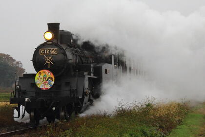 筑西市と「アイドルマスター」シリーズのコラボの一環として、10/11,11/9,11/22の「SLもおか」に記念ヘッドマークが掲出されました。コラボHM掲出は昨年11月に引き続き2回目。